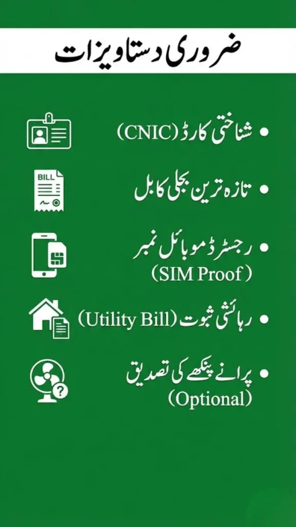 - Electricity bill in your name – The connection must be active, residential/domestic (not commercial or industrial), and registered under your CNIC.
